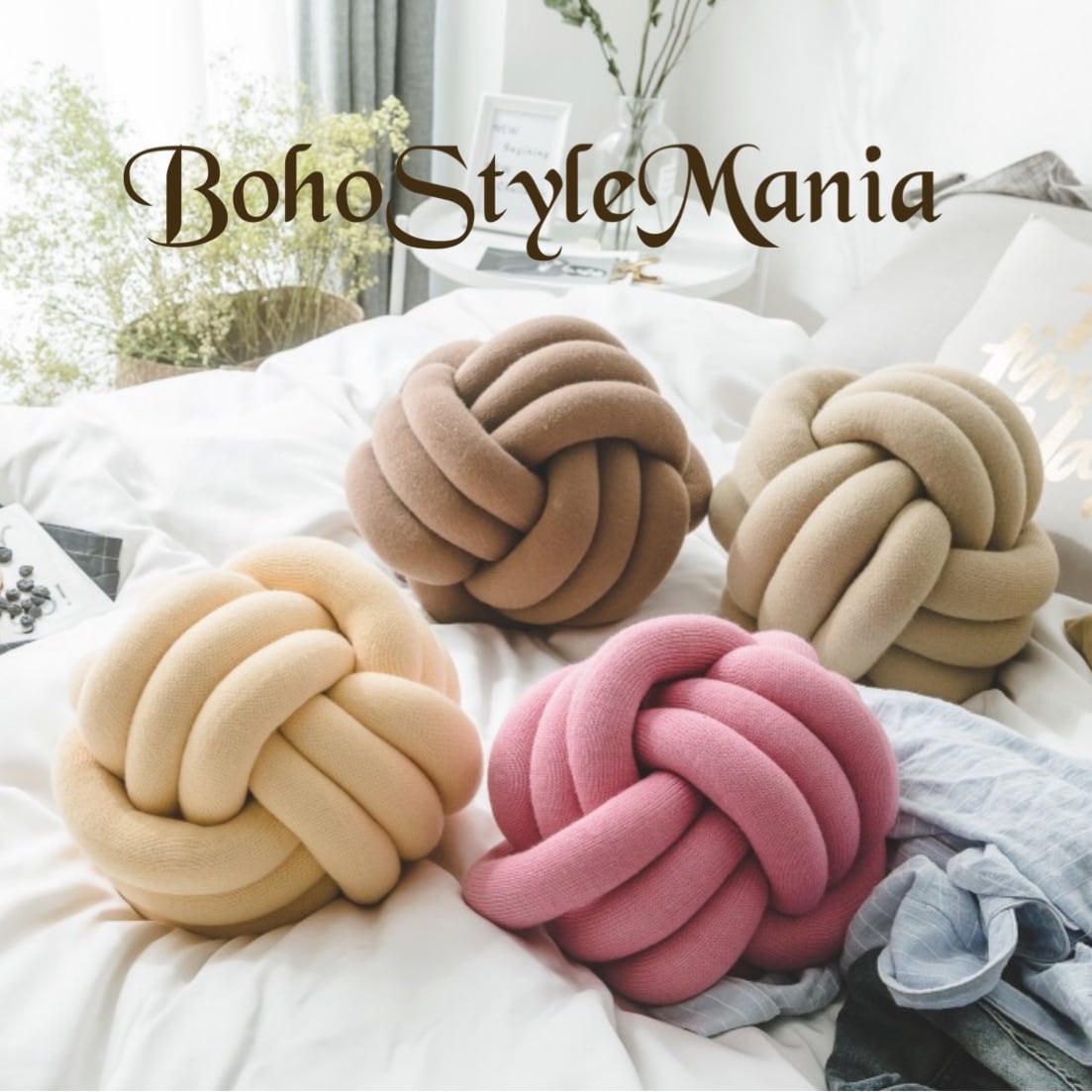 存在感のあるコロンとしたノットクッション♪