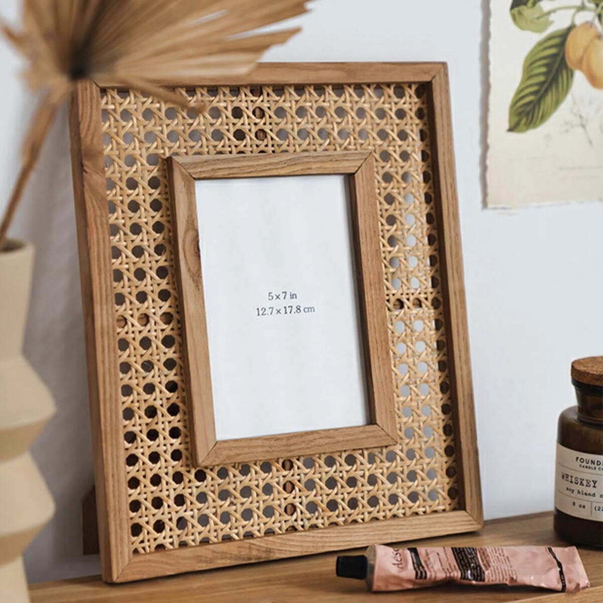 ラタン フォトスタンド インテリア ラタンフレーム フォトフレーム 写真立て 壁飾り 壁掛け かごめ編み ナチュラル 北欧
