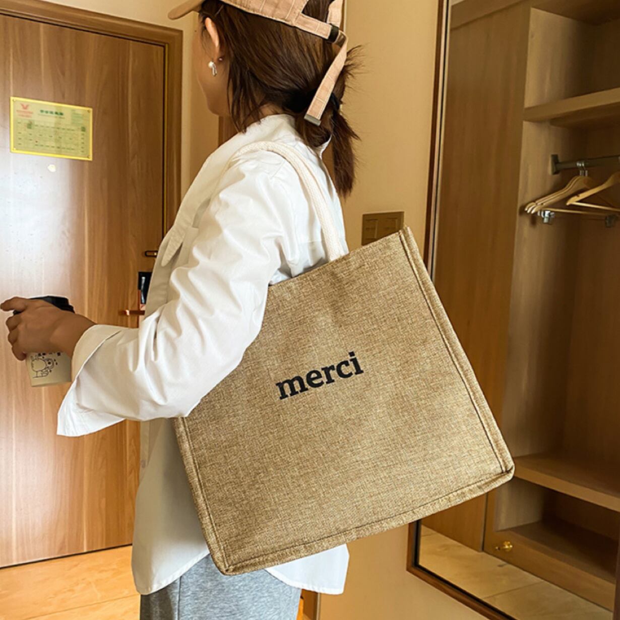 トートバッグ 麻バッグ 麻 リネン マチあり バッグ ロゴ 英字 ナチュラル カジュアル レディース ベージュ 大人カジュアル