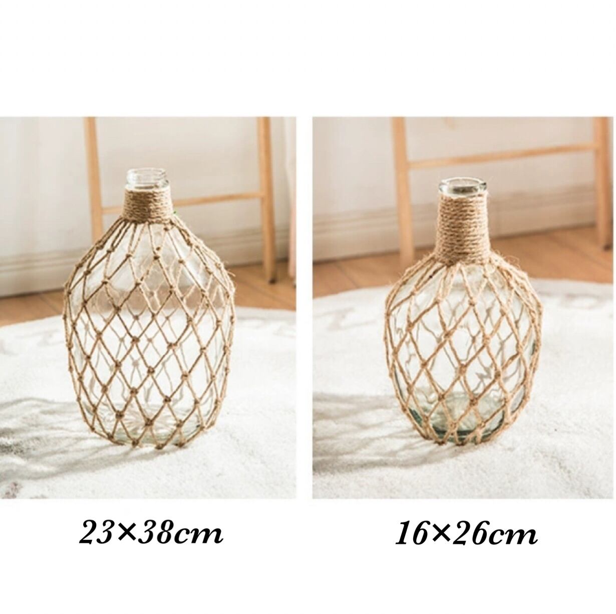 素材・材質:ガラス 花瓶+麻縄編み
