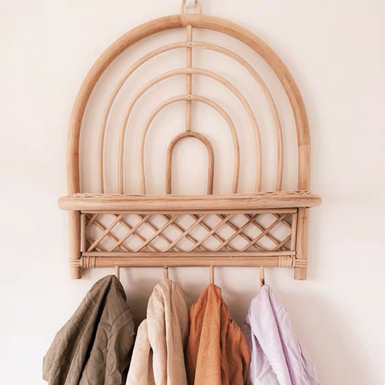 ラタン レインボー 壁掛け ウォールシェルフ ウォールラック 籐 韓国インテリア 虹 ラタンラック