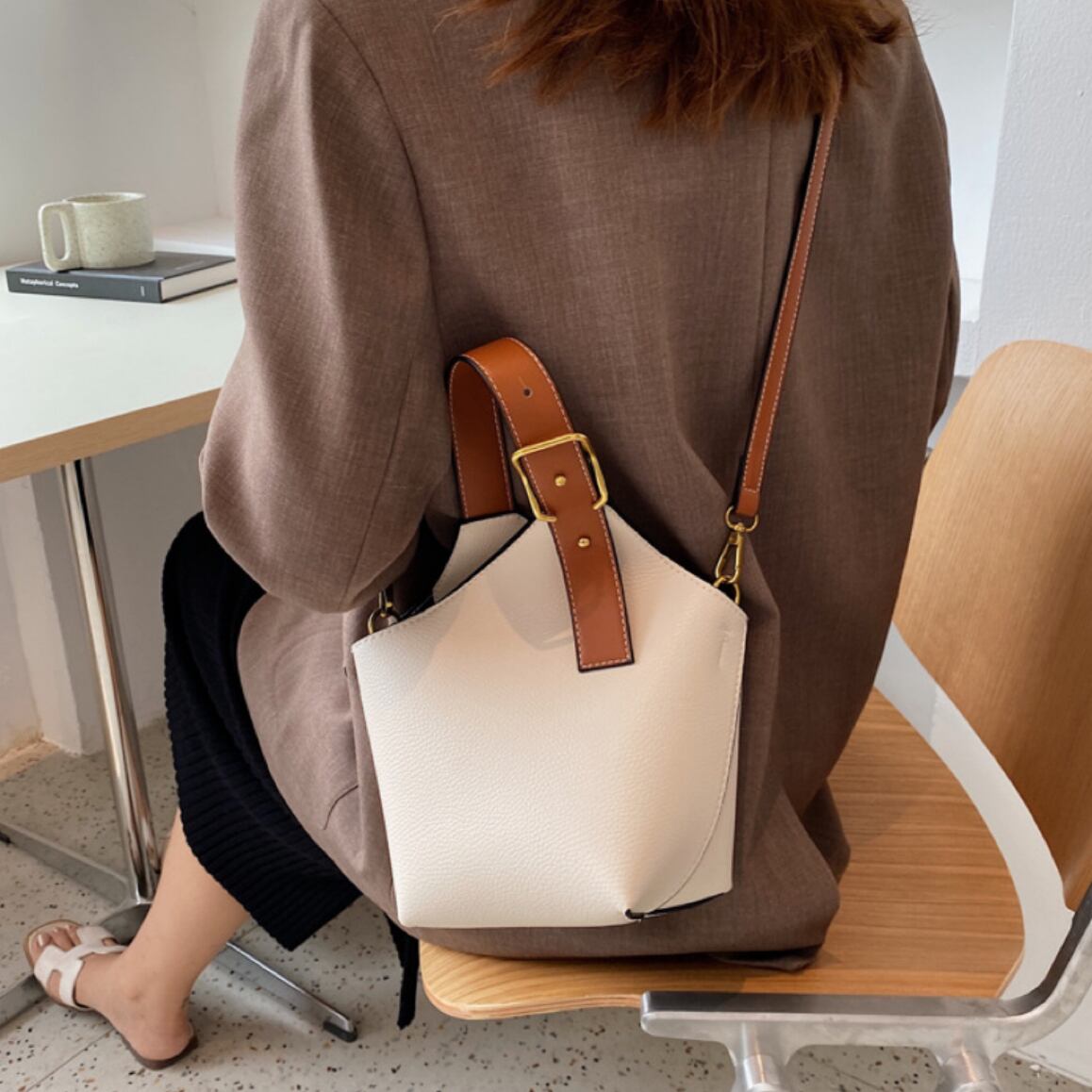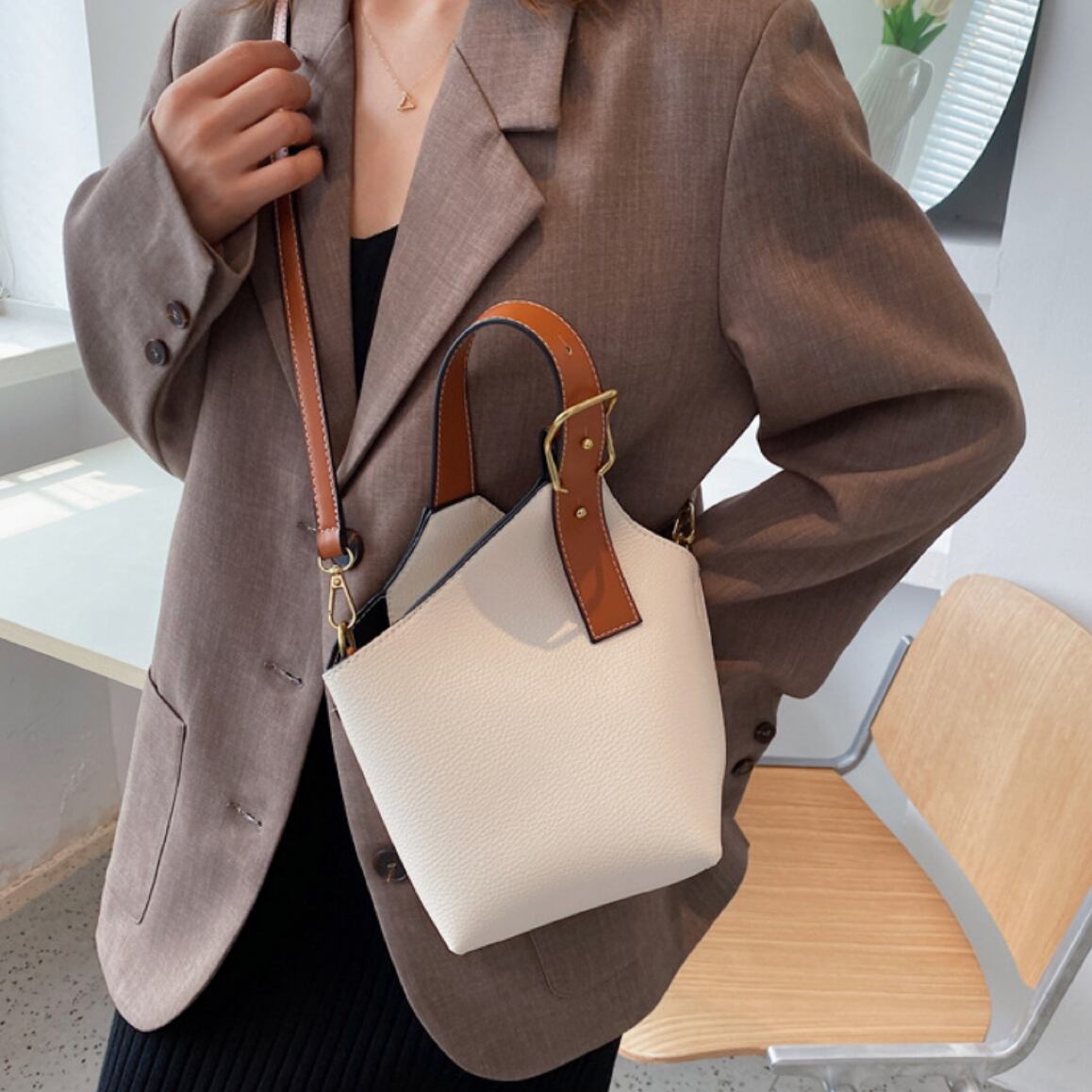 2way ミニショルダーバッグ ハンドバッグ バケット型ショルダーバッグ ホワイト ベージュ