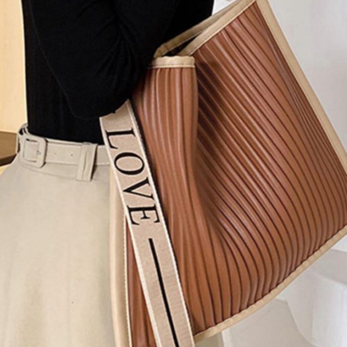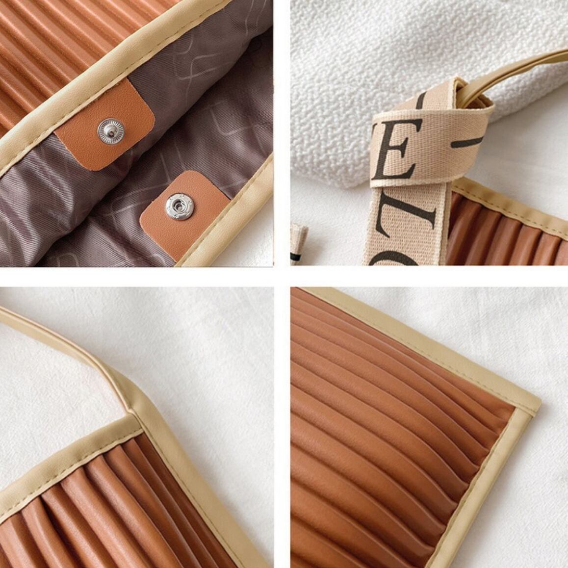 プリーツトートバッグ 【ブラウン】エコレザー レディース おしゃれ 肩掛けかばん バイカラー PU 通勤バッグ 大人かわいい 合皮カバン きれいめ プリーツバッグ