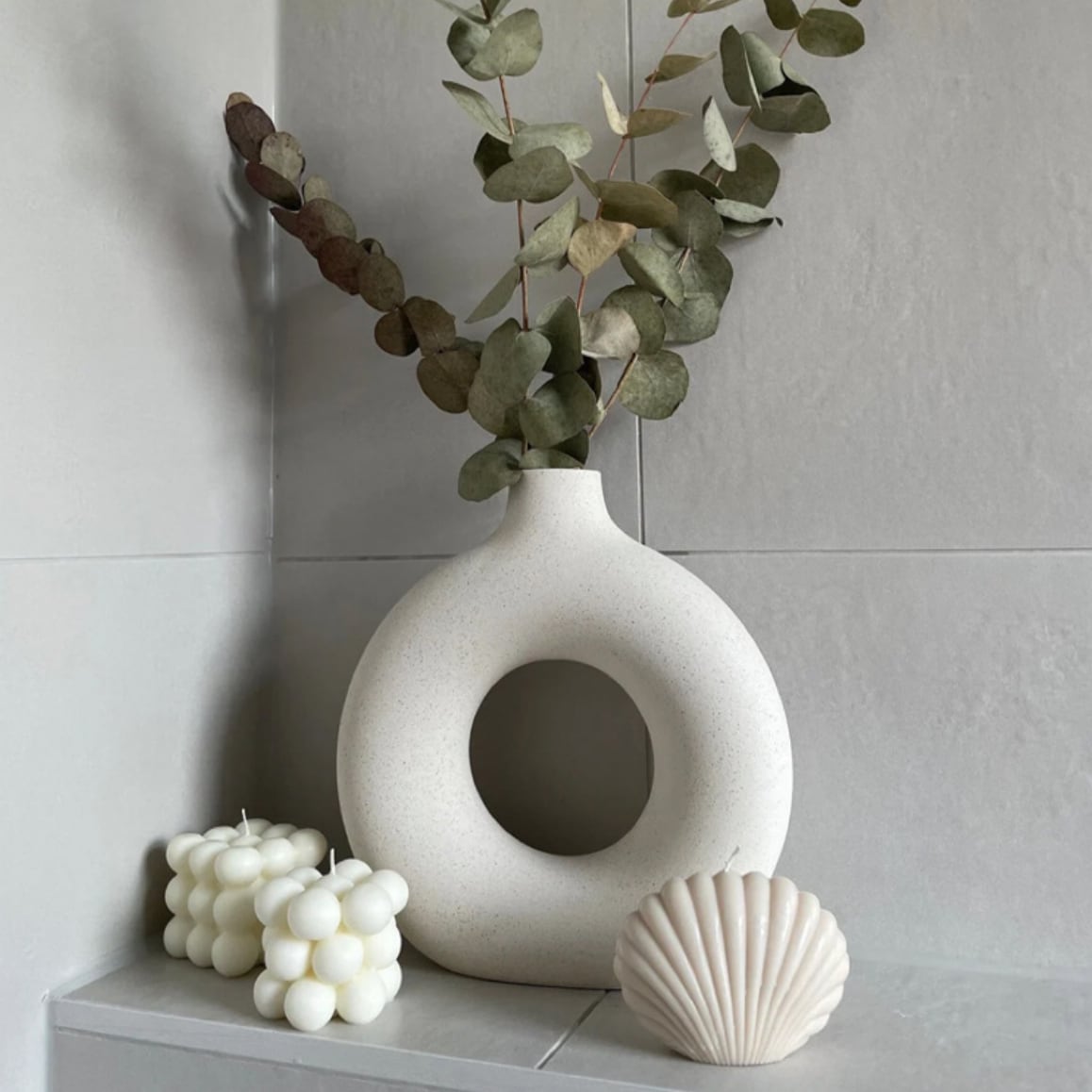 フラワーベース ホワイト セラミック製 花瓶 韓国インテリア ドーナツ型 ドーナツ形 北欧