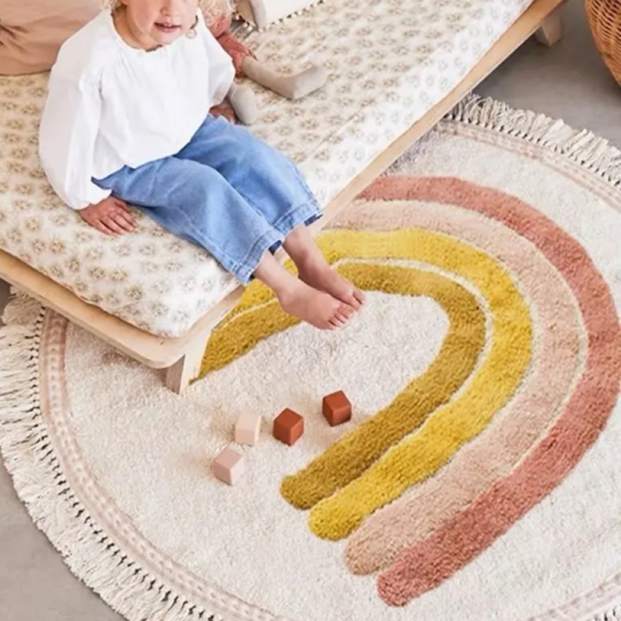 ラグマット キッズ マット 虹 レインボー 可愛い かわいい お洒落 おしゃれ 子供部屋 男の子 くすみ タッセル フリンジ ギフト プレゼント 出産祝い 誕生日 韓国 韓国インテリア 北欧 北欧インテリア