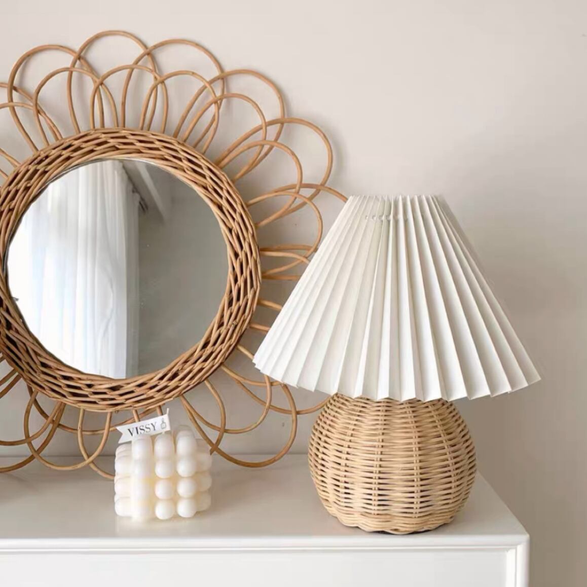 シェードランプ プリーツ ラタン USBライト 卓上 テーブル スタンドライト 照明 北欧 韓国 海外 インテリア