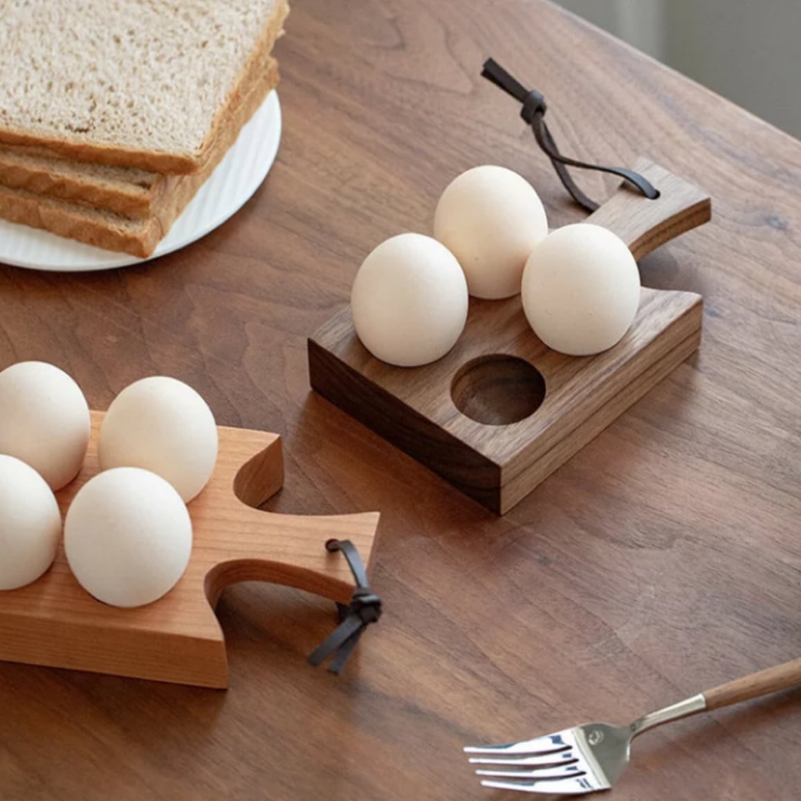 ハンドルホルダー付き たまご用 お皿 エッグスタンド 木製 たまご 卵 収納 食器 天然木 タマゴ エッグ キッチン ゆで卵 ナチュラル キッチン収納 北欧 キッチン雑貨 ギフト プレゼント
