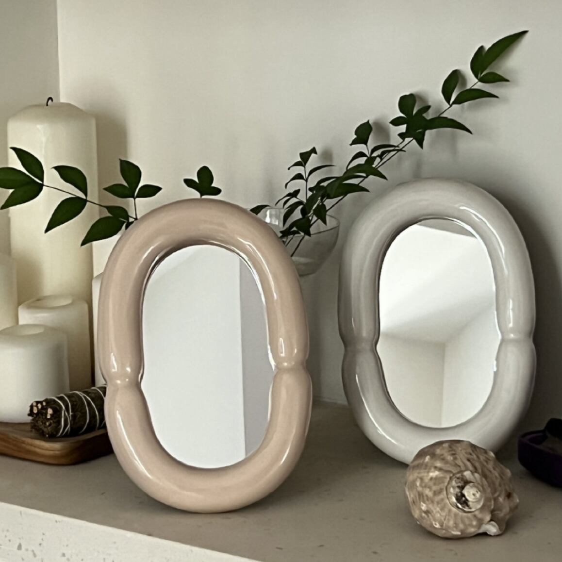 オーバル チャビー フレーム ミラー 置掛両用 壁掛け 卓上 かわいい 全2色 壁掛け 卓上 韓国